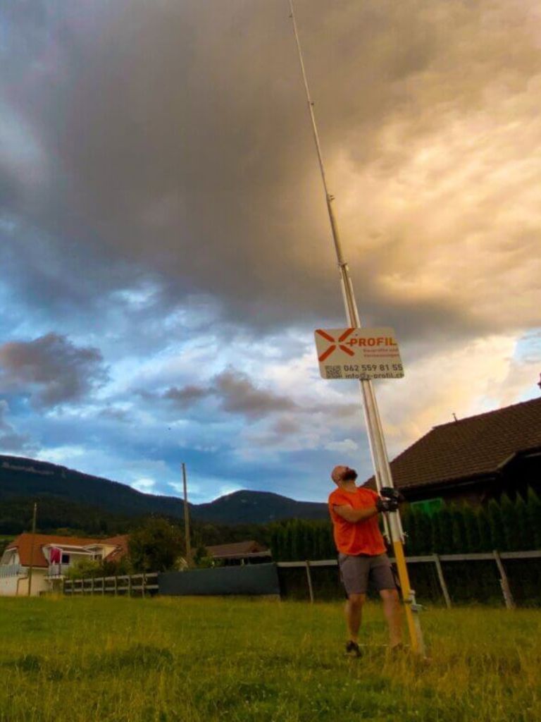 Ist eine standardmässige Profilierung nicht möglich? Müssen Durchfahrten, Parkplätze oder andere Bereiche frei gehalten werden? Sind Stromleitungen in der Nähe? Oder gibt es andere Gründe für eine nicht normgerechte Montage?